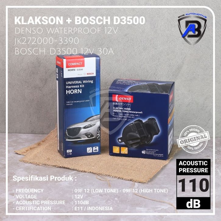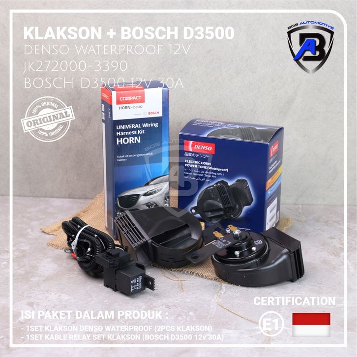 DENSO Klakson Mobil Motor Keong Waterproof dengan Kabel Relay Set BOSCH D3500 Original