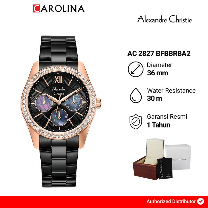 Jam Tangan Wanita Alexandre Christie Multifunction AC 2827 BFBBRBA2 Black Dial Black Stainless Steel Strap