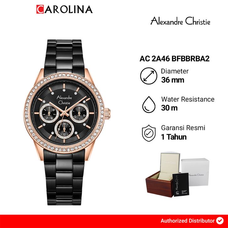 Jam Tangan Wanita Alexandre Christie Multifunction AC 2A46 BFBBRBA2 Black Dial Black Stainless Steel Strap