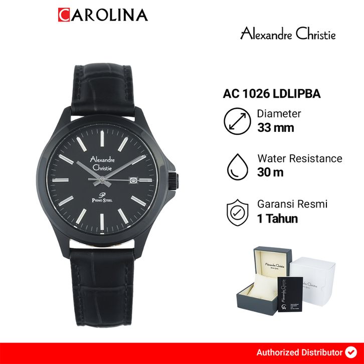 Jam Tangan Wanita Alexandre Christie Primo Steel AC 1026 LDLIPBA Black Dial Black Leather Strap
