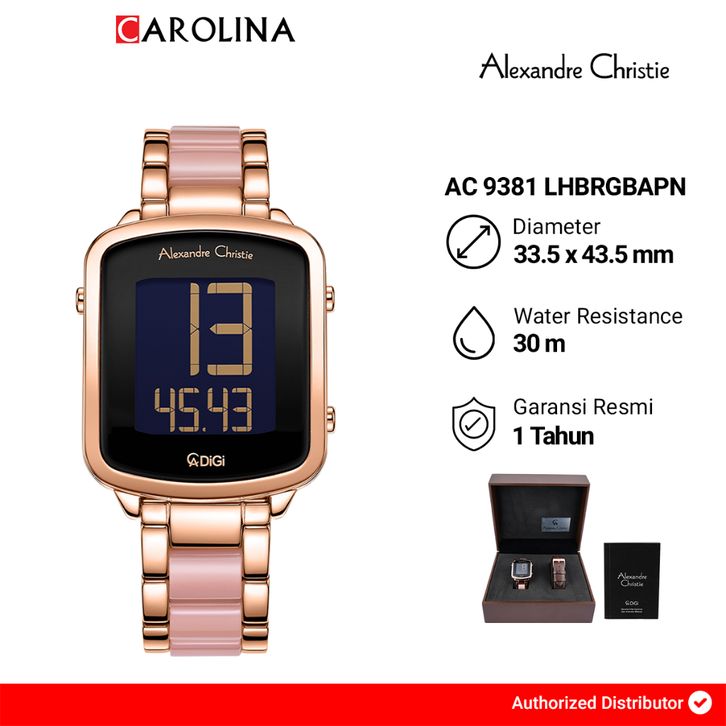 Jam Tangan Wanita Alexandre Christie Digi AC 9381 LHBRGBAPN Black Dial Rose Gold Dual Tone Stainless Steel