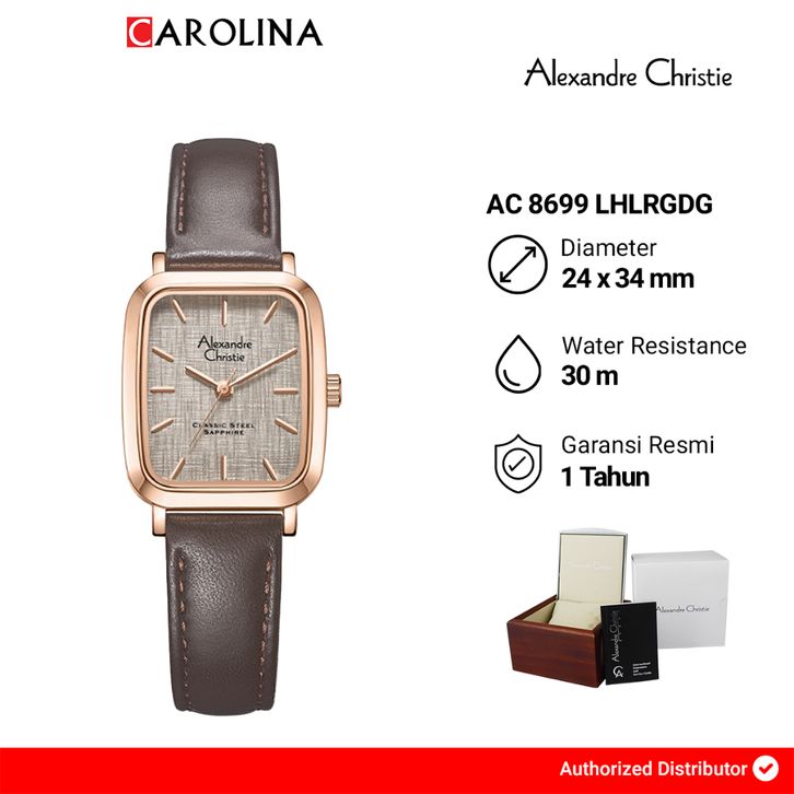 Jam Tangan Wanita Alexandre Christie Classic Steel AC 8699 LHLRGDG Grey Dial Brown Leather Strap