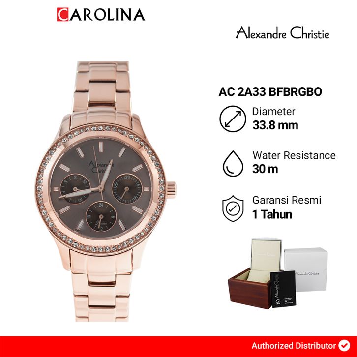 Jam Tangan Wanita Alexandre Christie Multifunction AC 2A33 BFBRGBO Brown Sunray Dial Rose Gold Stainless Steel Strap