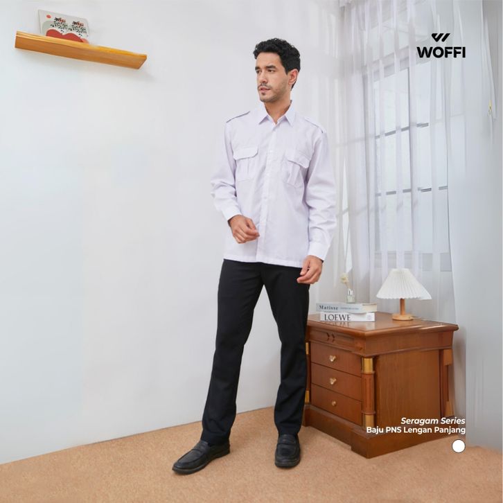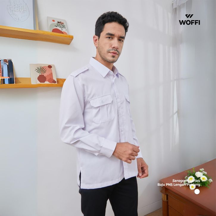 TERBARU Woffi Man Kemeja - Seragam Putih PNS ASN Lengan Panjang efics
