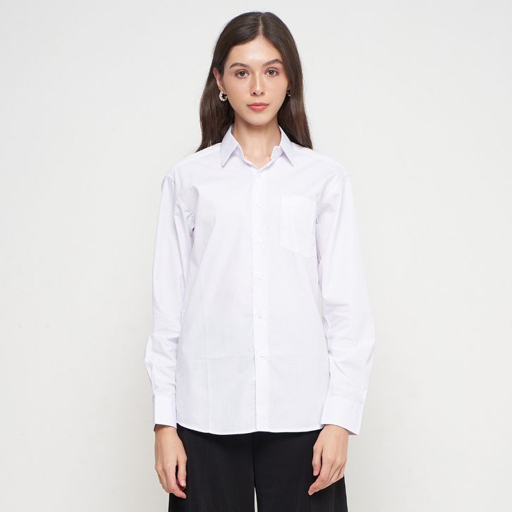 GROSIR Kemeja Polos Wanita Lengan Panjang Putih OLR003 ohakh