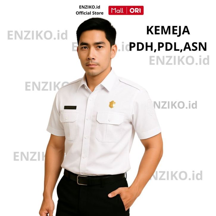 NEW ENZIKO Kemeja Pria Pdh Pdl Pns Seragam Asn Warna Putih Lengan Pendek Ukuran Standar Sampai Jumbo ubikb