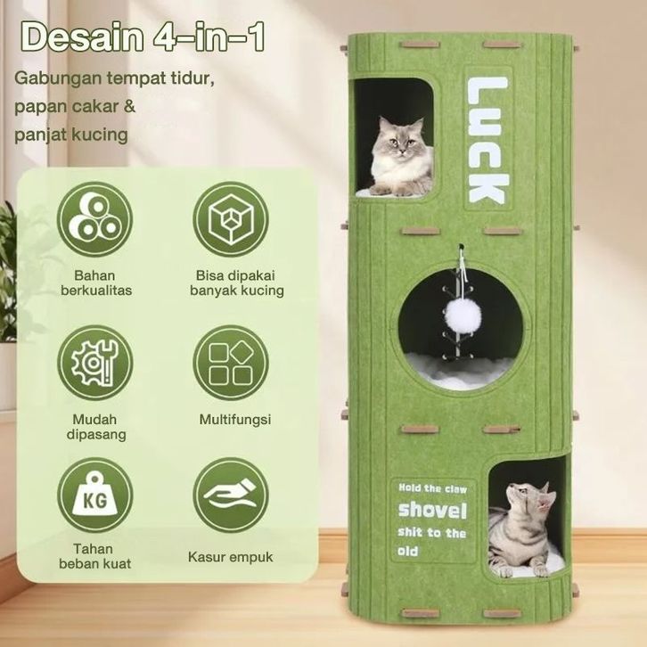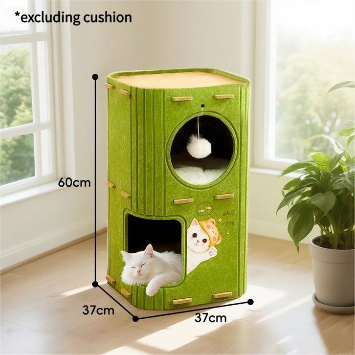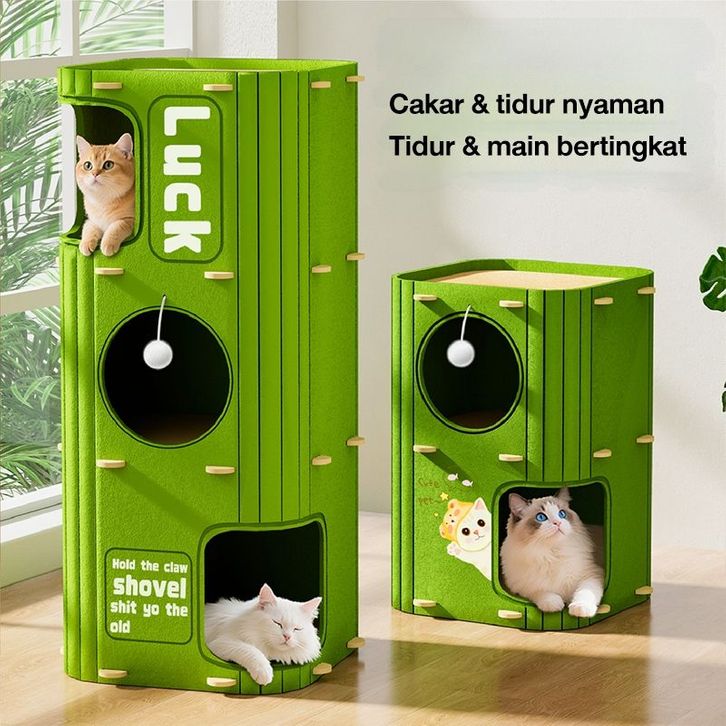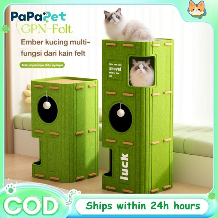 Pohon Kucing Felt Multi Level Rumah Kucing Semi Tertutup dengan Terowongan Tahan Lama