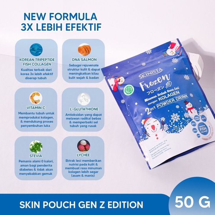 Skinista Frozen Collagen Powder Drink 2 In 1 Bpom Halal Mencerahkan Kulit & Mengurangi Jerawat