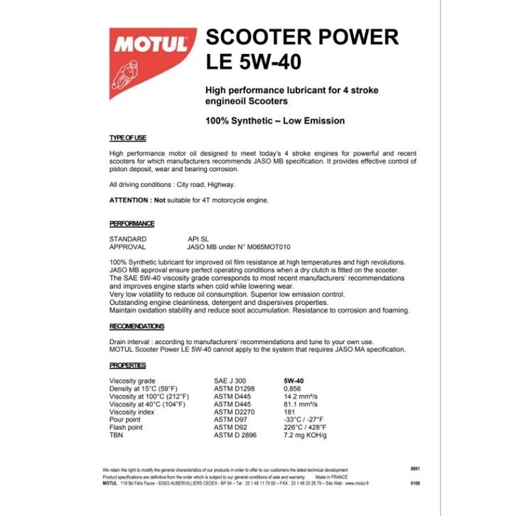 GROSIR Motul Scooter Power Le 4T 5W40 uharf