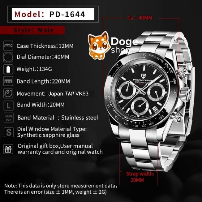 Jam Tangan Pria Pagani Design PD-1644 New 2025 Chronograph VK63 Japan Movement Jam Tangan Homage