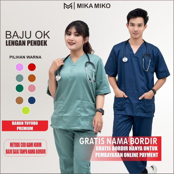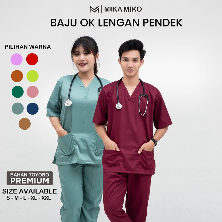 PROMO Baju OK Lengan Pendek Scrub Dokter Baju OKA Perawat Uniform Medis Baju Nakes Klinik Pakaian Lab Oprasi