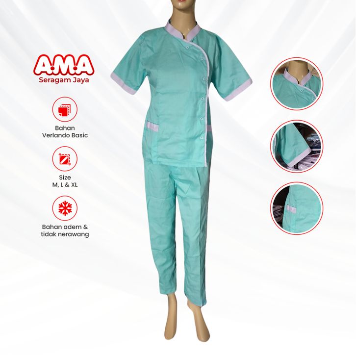 TERLAKU Baju Perawat Wanita Biru Muda Seragam Oka Jaga Dinas Medis Lengan Pendek Adem Size M L XL Terbaru isarr
