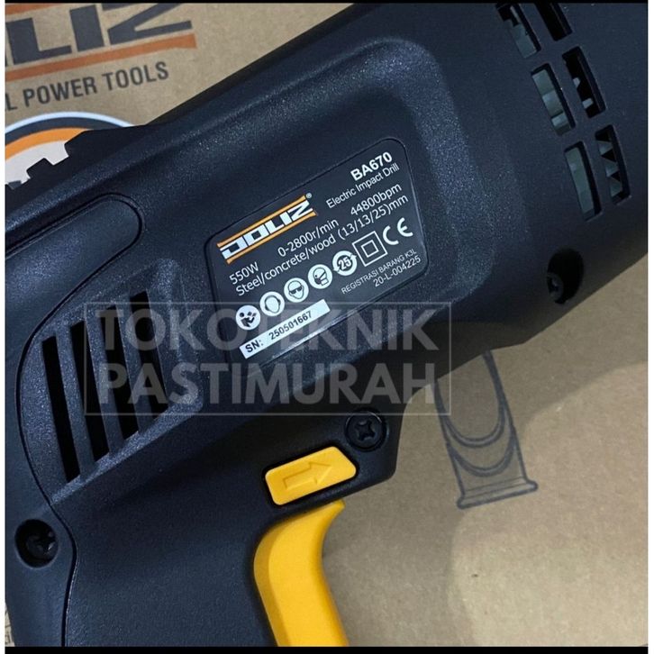 Mesin Bor Tangan Listrik Doliz BA670-Impact Drill 13mm Bor bolak Balik