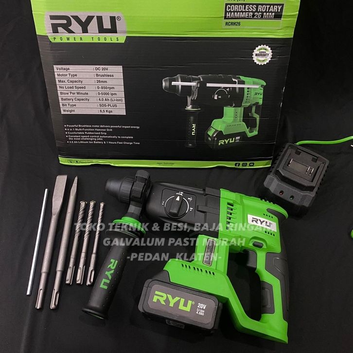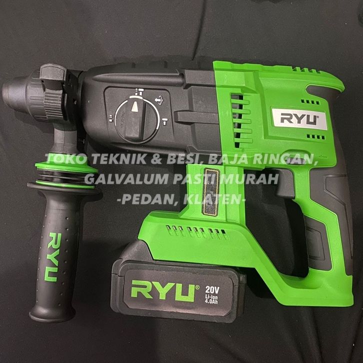 Bor Bobok Beton Cas Batrai RYU RCRH26 Cordless Rotary Hammer 26mm Baterai 3 Mode
