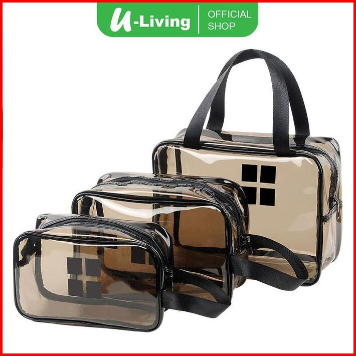 U-living Washbag Tansparan Washbag Travel Waterproof Tas Kosmetik Besar Travel Tas Make Up Tas Travel Ao005 Kulit Pink
