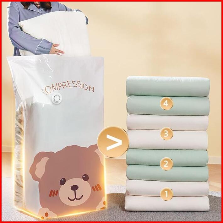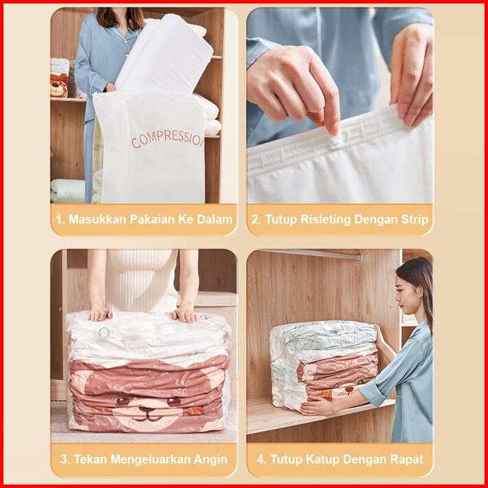 U-living Set 4pcs Plastik Vacuum Dan Pompa Elektrik Vacuum Teddy Bear Kantong Pakaian Travel Anti-air Dipakai Berulang