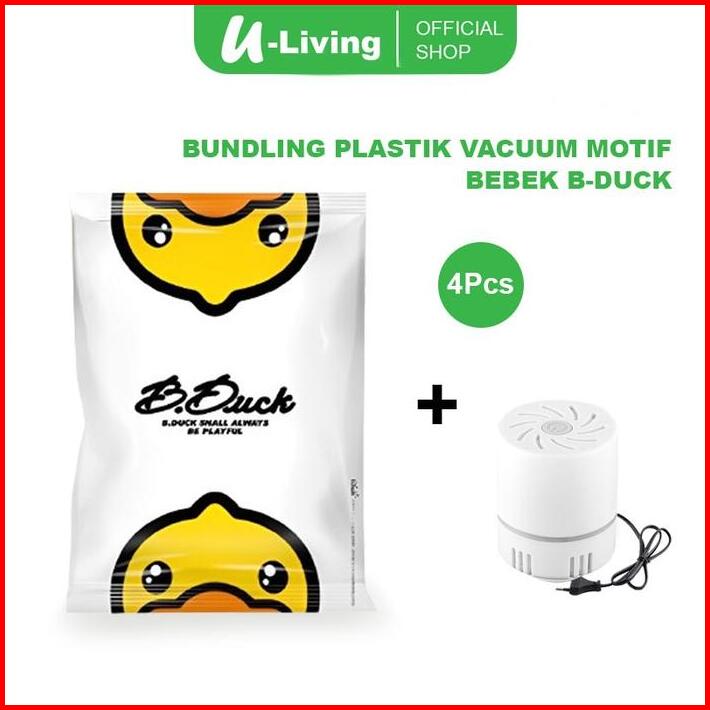U-living Set 4pcs Plastik Vacuum Dan Pompa Elektrik Vacuum B-duck Kantong Pakaian Travel Anti-air Dipakai Berulang