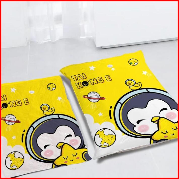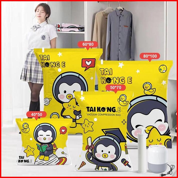 U-living Set 4pcs Plastik Vacuum Dan Pompa Elektrik Vacuum Penguin Kantong Pakaian Travel Anti-air Dipakai Berulang Plas