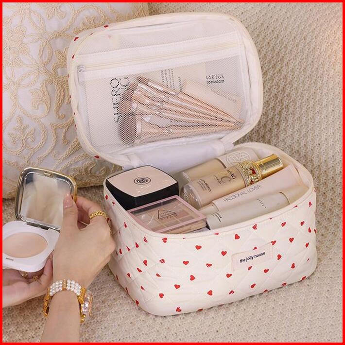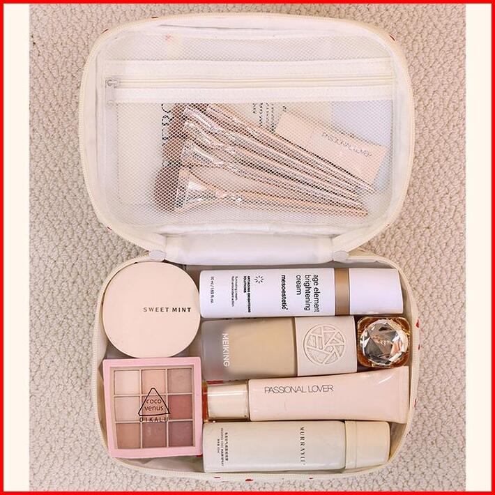 U-living Tas Penyimpanan Kosmetik Travel Organizer Make Up Kain Lembut Kapasitas Besar Dengan Sekat Pegangan Mudah Dibaw