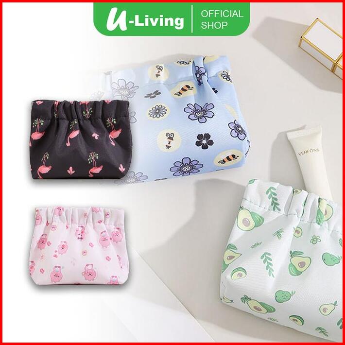 U-living Tas Penyimpanan Kosmetik Mini Portable Pouch Make Up Serut Organizer Lipstik Penutup Otomatis Tm017