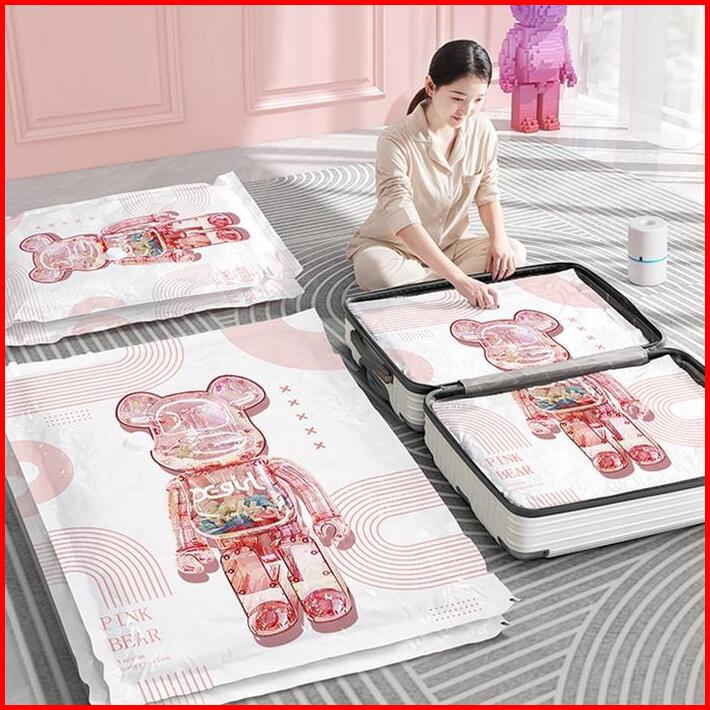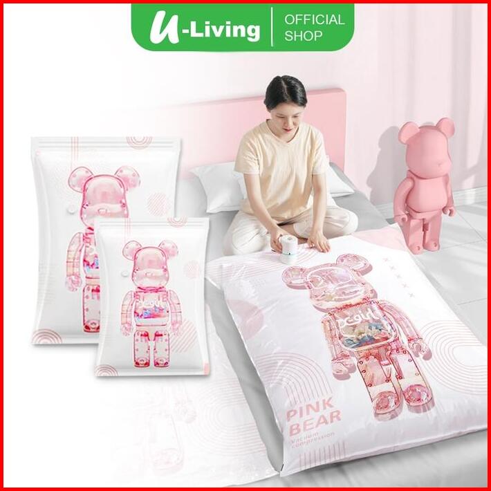 U-living Plastik Vacuum Baju Motif Pink Bearbrick Kantong Pakaian