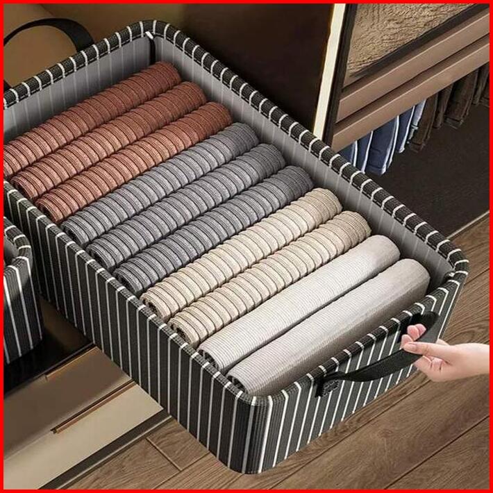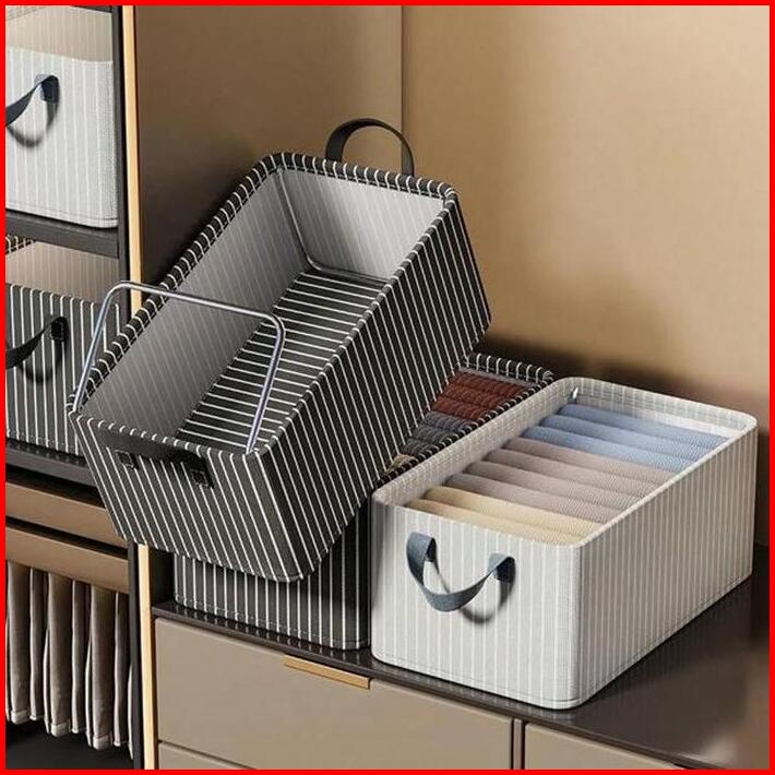U-living Storage Foldable Penyimpanan Lipat Motif Garis Strip Kotak Organizer Lemari Pakaian Kain Gagang Dapat Ditumpuk