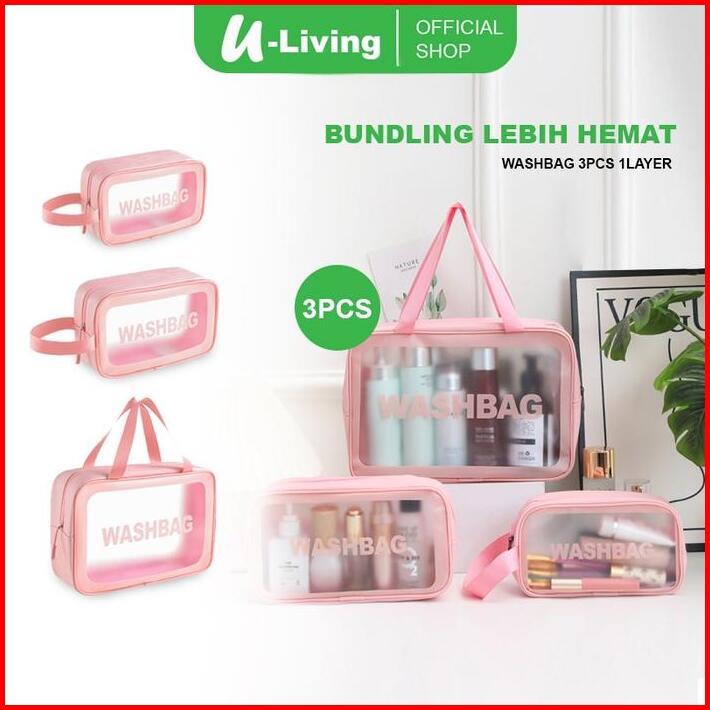 U-living Bundle 3pcs Washbag Tas Kosmetik Transparan Tas Make Up Travel Bag Organizer Waterproof Aob001 Kulit