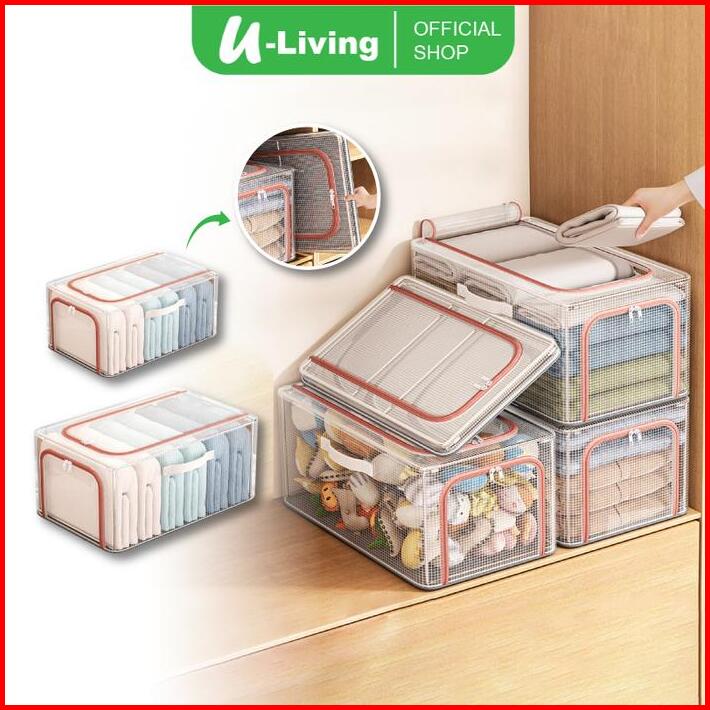 U-living Storage Box Penyimpanan Pakaian Lipat Pvc Transparan Kotak Organizer Lemari Pakaian Selimut Jendela Bening Doub