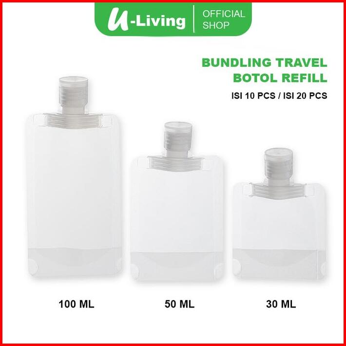 U-living Set Bundling Travel Botol Refill Tempat Sabun Cair Botol Sabun Travel Plastik Fliptop Travel Bottle Cosmetic Lo