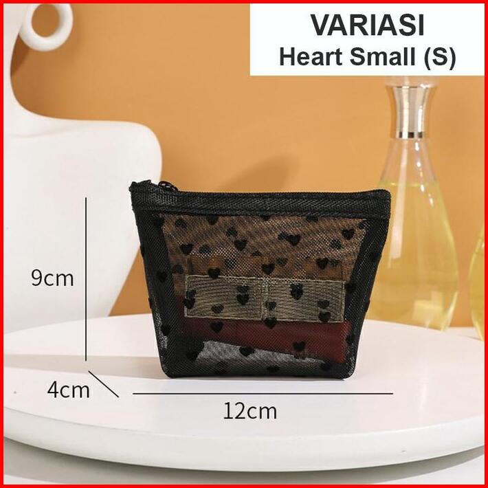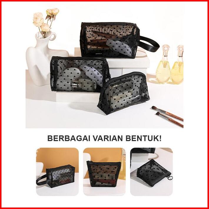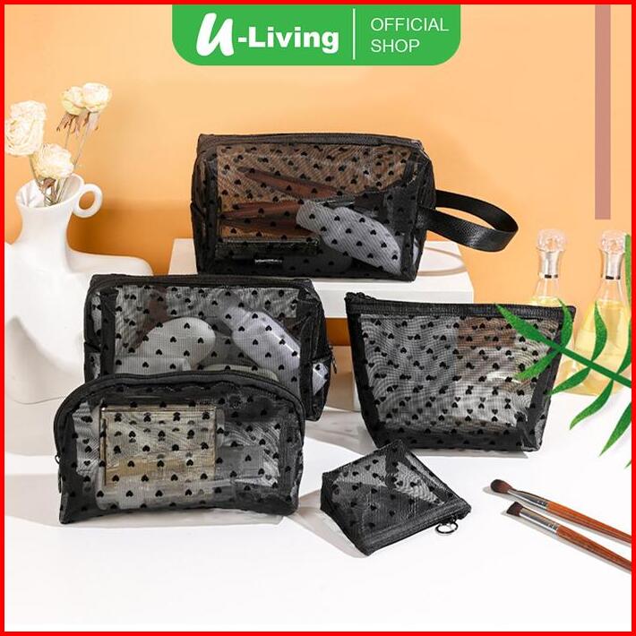 U-living Tas Kosmetik Jaring Pouch Make Up Transparan Tas Penyimpanan Portable Love Ritsleting Tm016