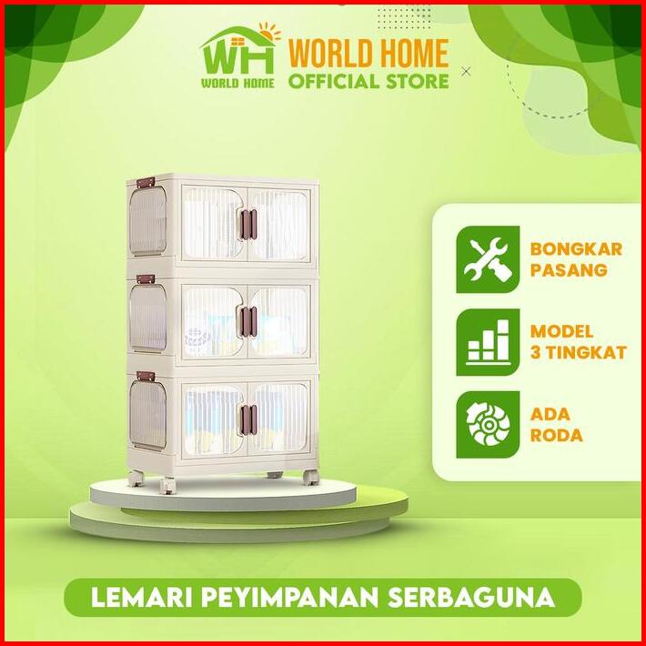 Worldhome Lemari Penyimpanan 3 Tingkat Dapat Dilipat Dengan Desain Ergonomis Dan Praktis