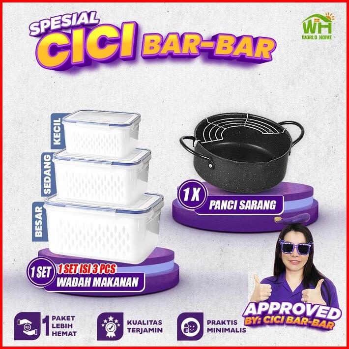 Whi X Cici Barbar Paket Kotak Penyimpanan Serbaguna Panci Penggorengan Dengan Tirisan