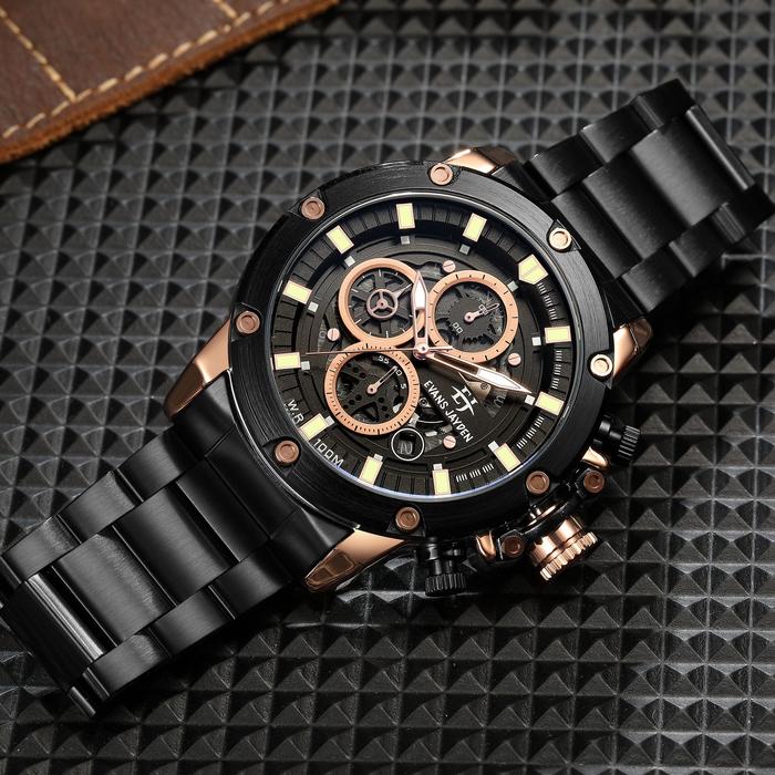 Jam Tangan Pria Buy 1 Get 1 Evans Jayden Jam Tangan Pria 9570 Rantai Stainless Steel Chronograph