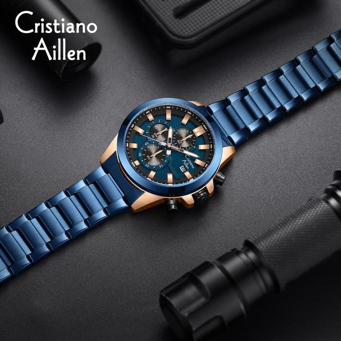 Jam Tangan Pria Buy 1 Get 1 Cristiano Aillen Jam Tangan Pria Analog 8895 Rantai Stainless Steel