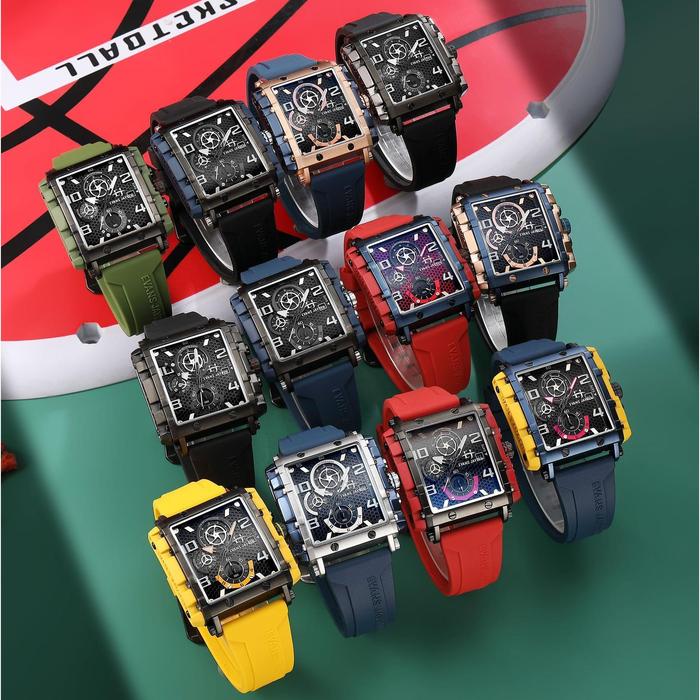 Jam Tangan Pria Buy 1 get 1 jam tangan Evans Jayden Jam Tangan Pria 9557 Rubber Silicon Kaca