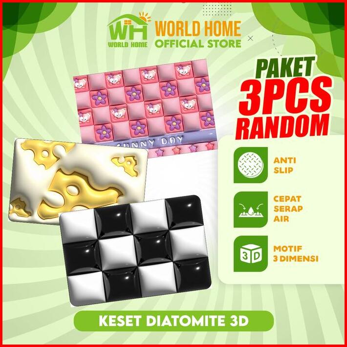Worldhome Keset Diatomite 3d Menyerap Air Untuk Lingkungan Higienis 3 Pcs