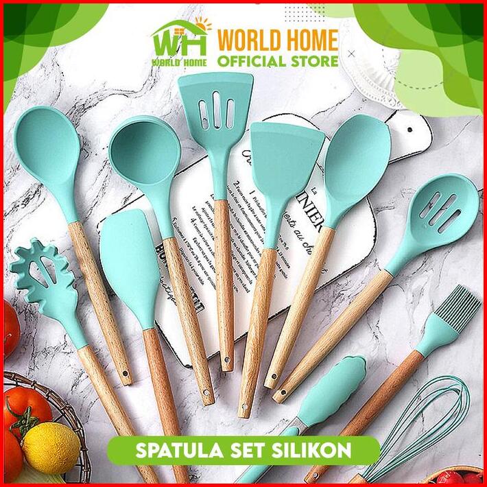 Worldhome Set Spatula Silikon 12 Pcs Set Peralatan Masak Lengkap Dengan Wadah Jepitan
