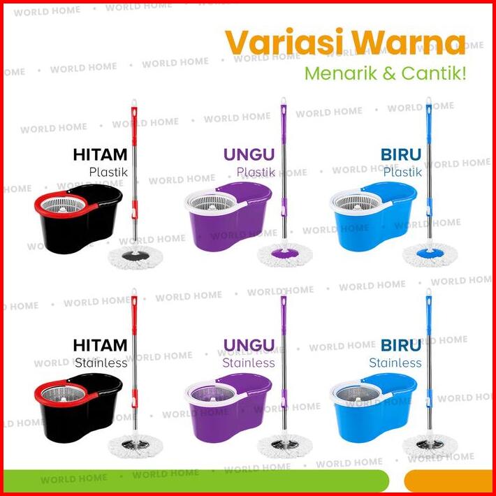 Whi X Jordi Onsu Alat Pel Lantai Ultra Pel Putar Pel Mop Tanpa Peras Tangan Kain Pel Lembut Ember Plastik