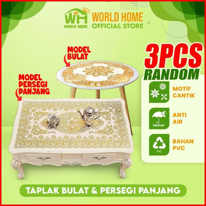 Worldhome Taplak Meja Tamu Taplak Meja Tamu Persegi Panjang Dan Taplak Bulat Cantik Paket 3 Pcs