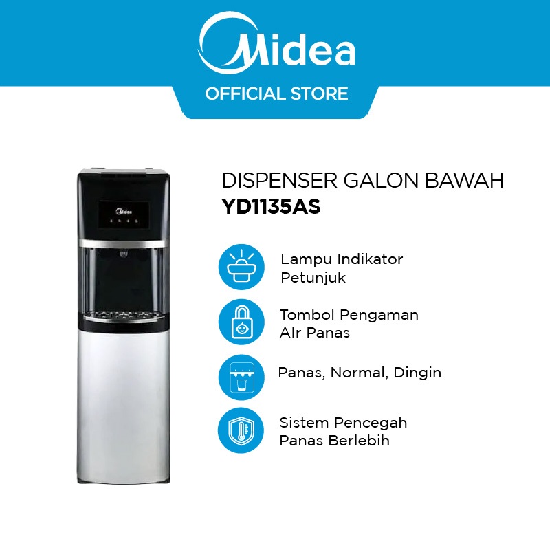 Midea Dispenser Galon Bawah hemat daya - YD1135AS Bottom Loading Water Tank Stainless Steel