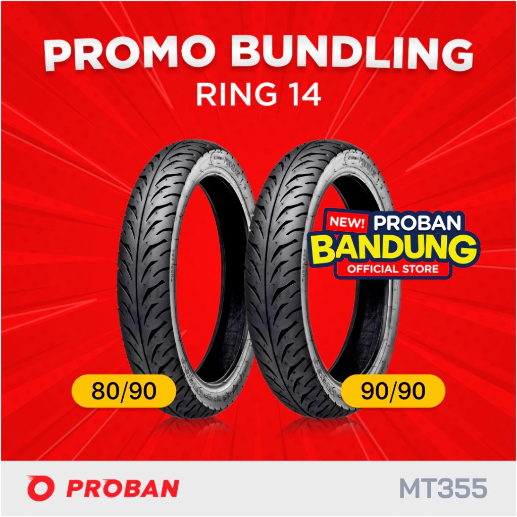 PAKET BUNDLE BAN DEPAN BELAKANG SEPASANG RING 14 BAN MOTOR TUBELESS PROBAN 80/90-14 & PROBAN 90/90-14
