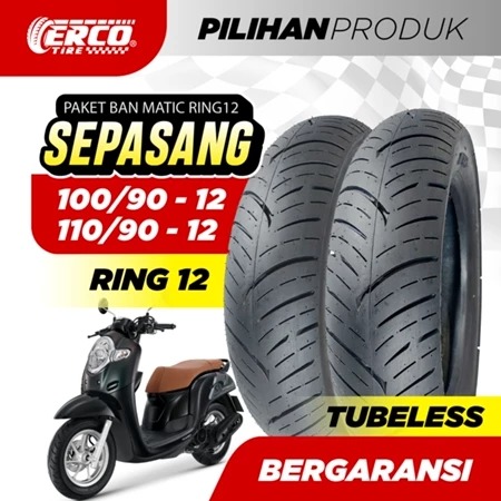 Ban Motor - Paket Sepasang Ban Motor Scoopy Ring12, FD GRIPP ERCO 100/90-12 dan 110/90-12, Tubeless, Ban matic Ring 12,