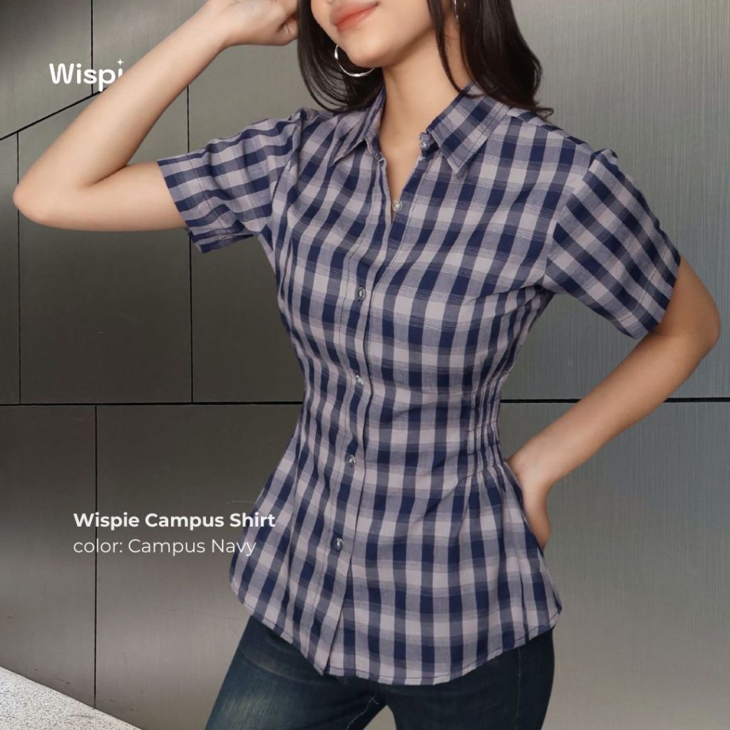 [Star] Wispie Campus Shirt | Kemeja Kotak Lengan Pendek Wanita Fitted Slim Fit Blouse Karet - Ars5