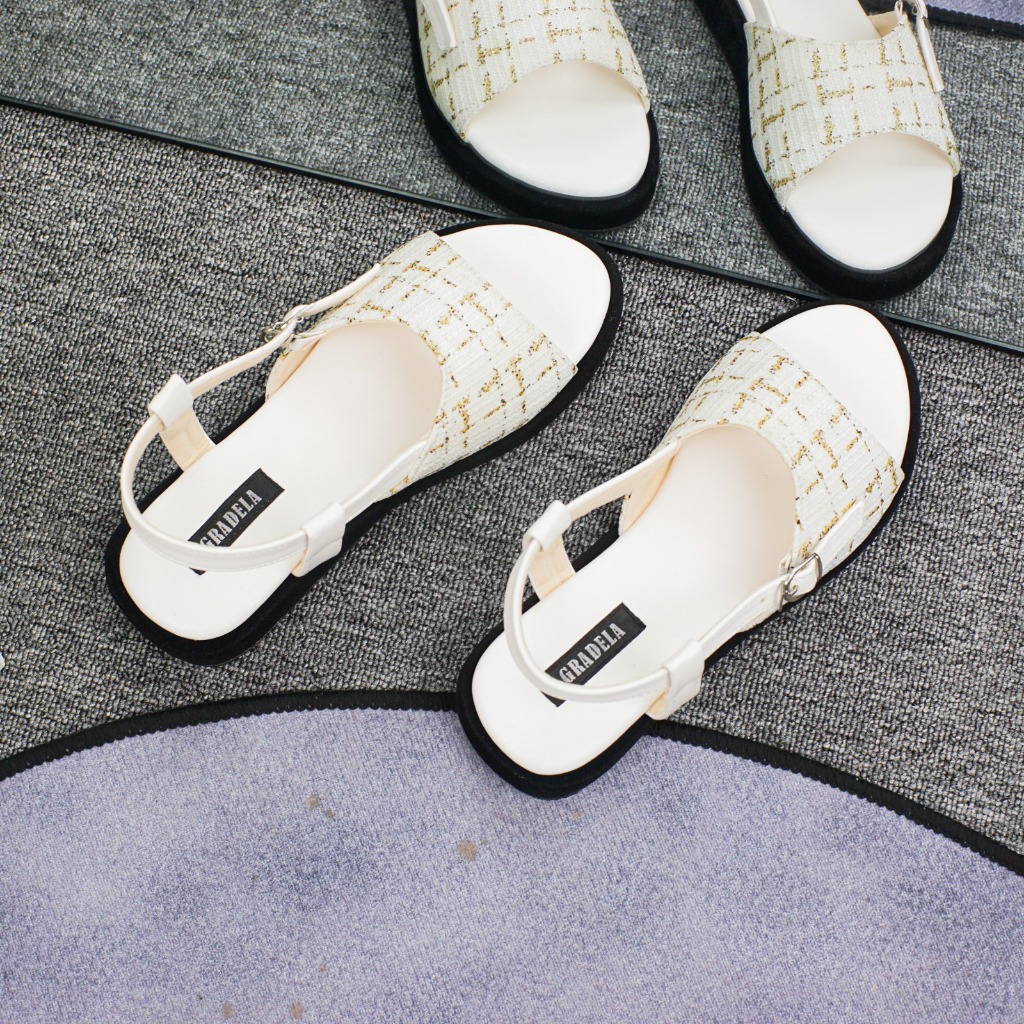 Gradela - OMIRA Sandal Tali Platform Wanita Sendal Rajut Tweed Gesper