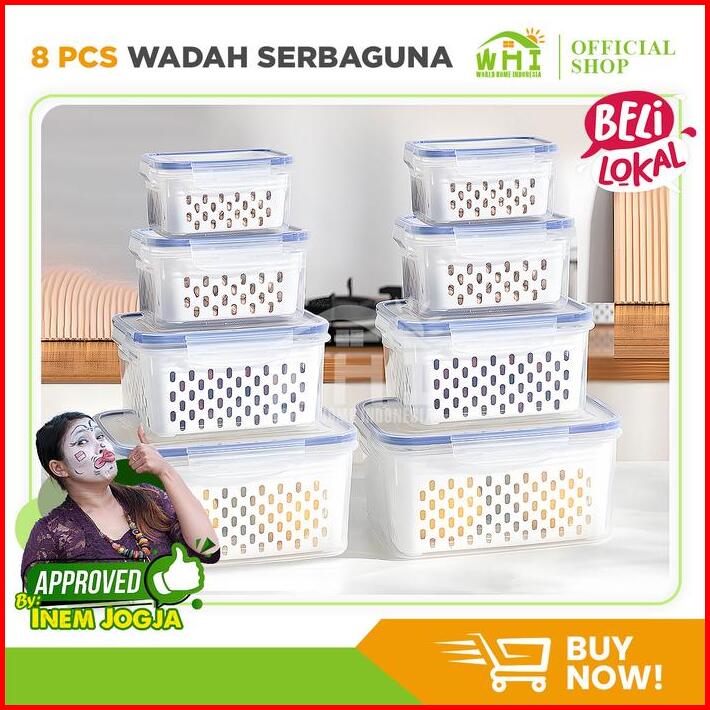 Whi X Inem Jogja Paket Kotak Plastik Dilengkapi Saringan Kotak Makanan Praktis Multifungsi