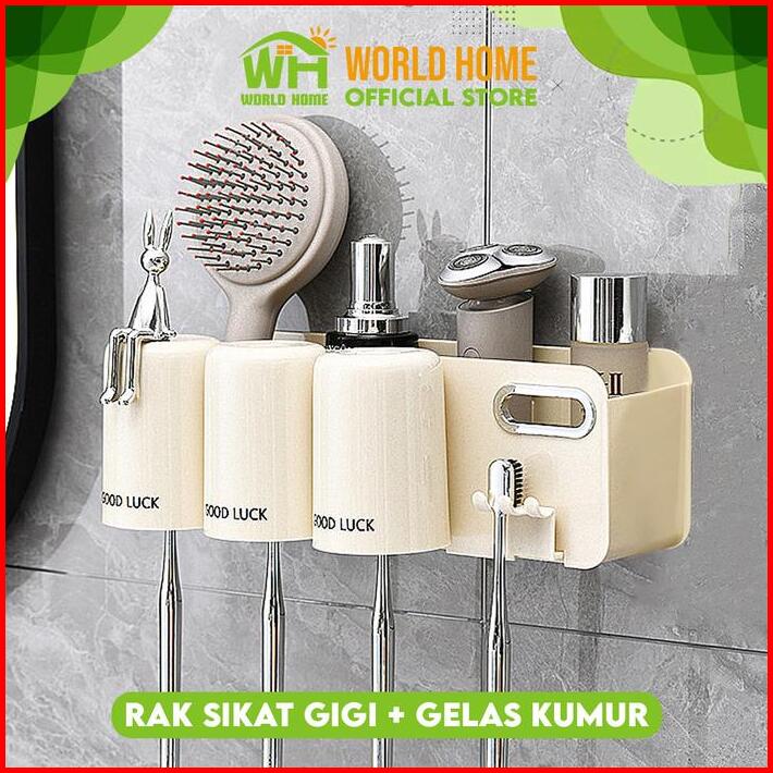 Worldhome Tempat Sikat Gigi 3 Varian Ukuran Organizer Dispenser Odol Rak Kamar Mandi Gantung