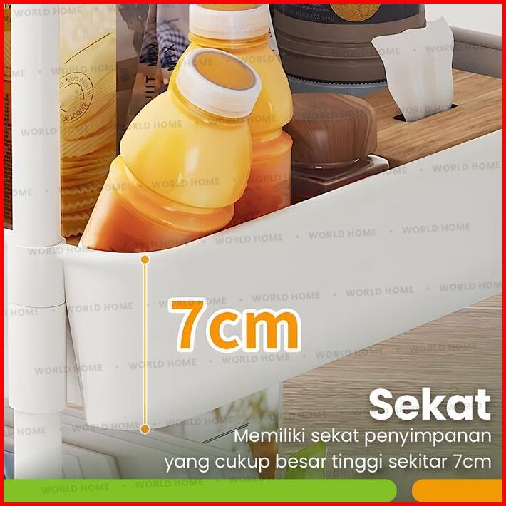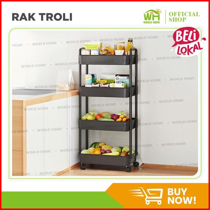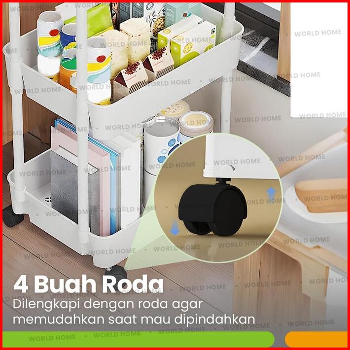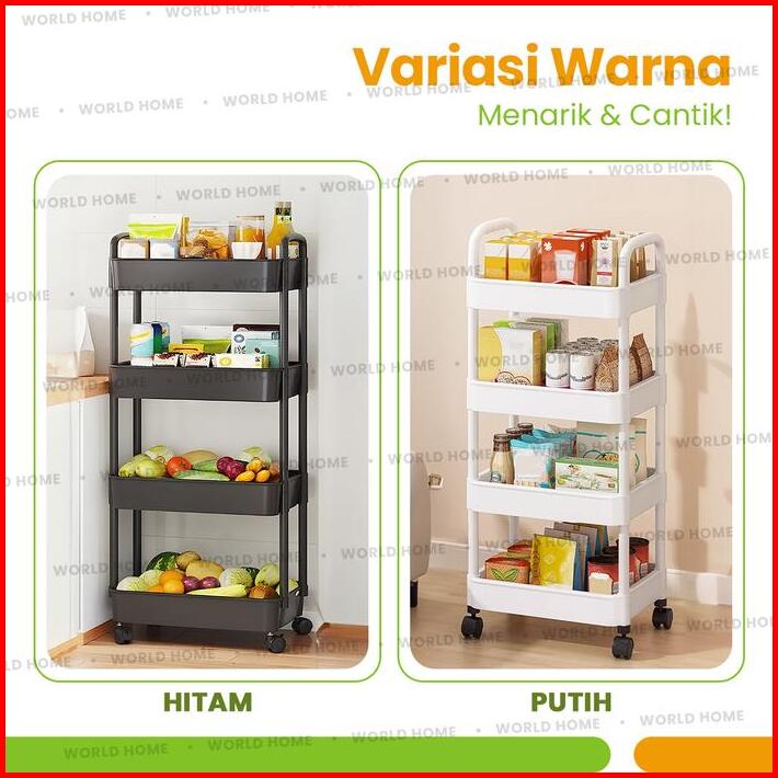 Worldhome Rak Troli Plastik 4 Susun Kuat Dengan Roda Untuk Dapur Dan Penyimpanan Serbaguna