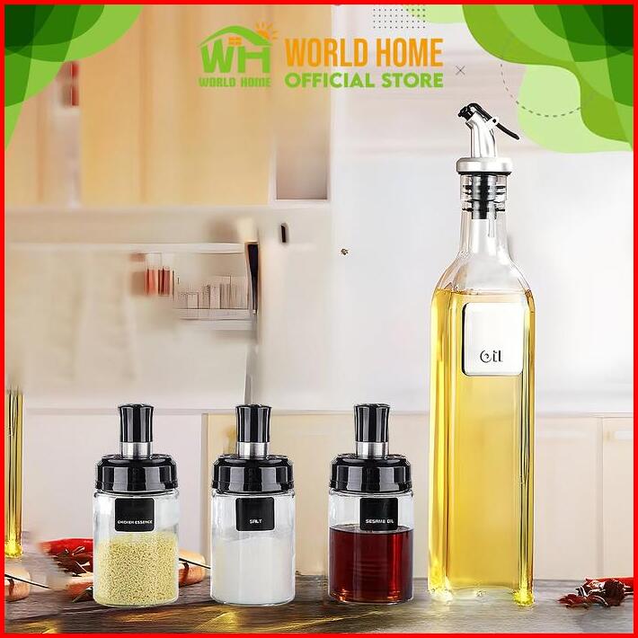 Worldhome Set Botol Bumbu Dapur Dan Minyak Dengan Desain Fungsional