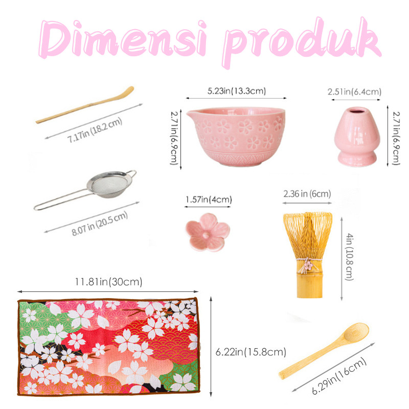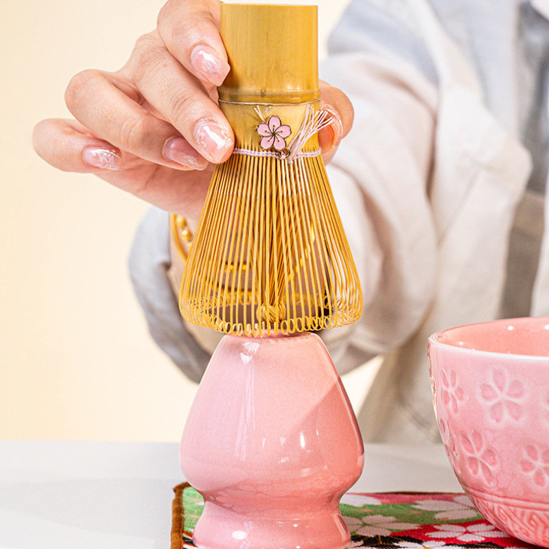 Set matcha bunga sakura Jepang / sakura Matcha Mangkuk+sakura Pengaduk Matcha Bambu+Sendok+Penyangga Whisk Matcha