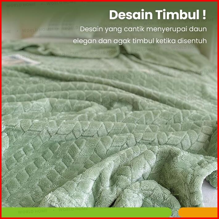 Worldhome Selimut Bulu Premium Motif Daun Bahan Microtex 160x200cm Selimut Lembut